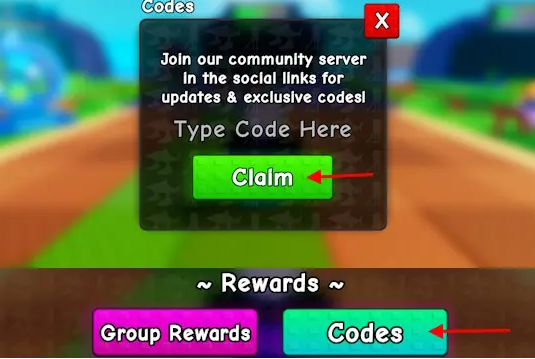 - Procure e toque no botão “Shop” (Loja) e, em seguida, em “Codes” (Códigos), localizado no lado esquerdo da interface do jogo.